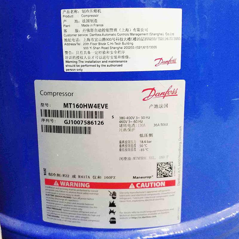 法国Maneurop美优乐压缩机MT160HW4DVE维护保养更换注意事项:制冷剂/氟/冷媒型号及充注加注量、冷冻润滑油型号及添补加量、高低压压力值、运行电流值、吸排气温度范围等。