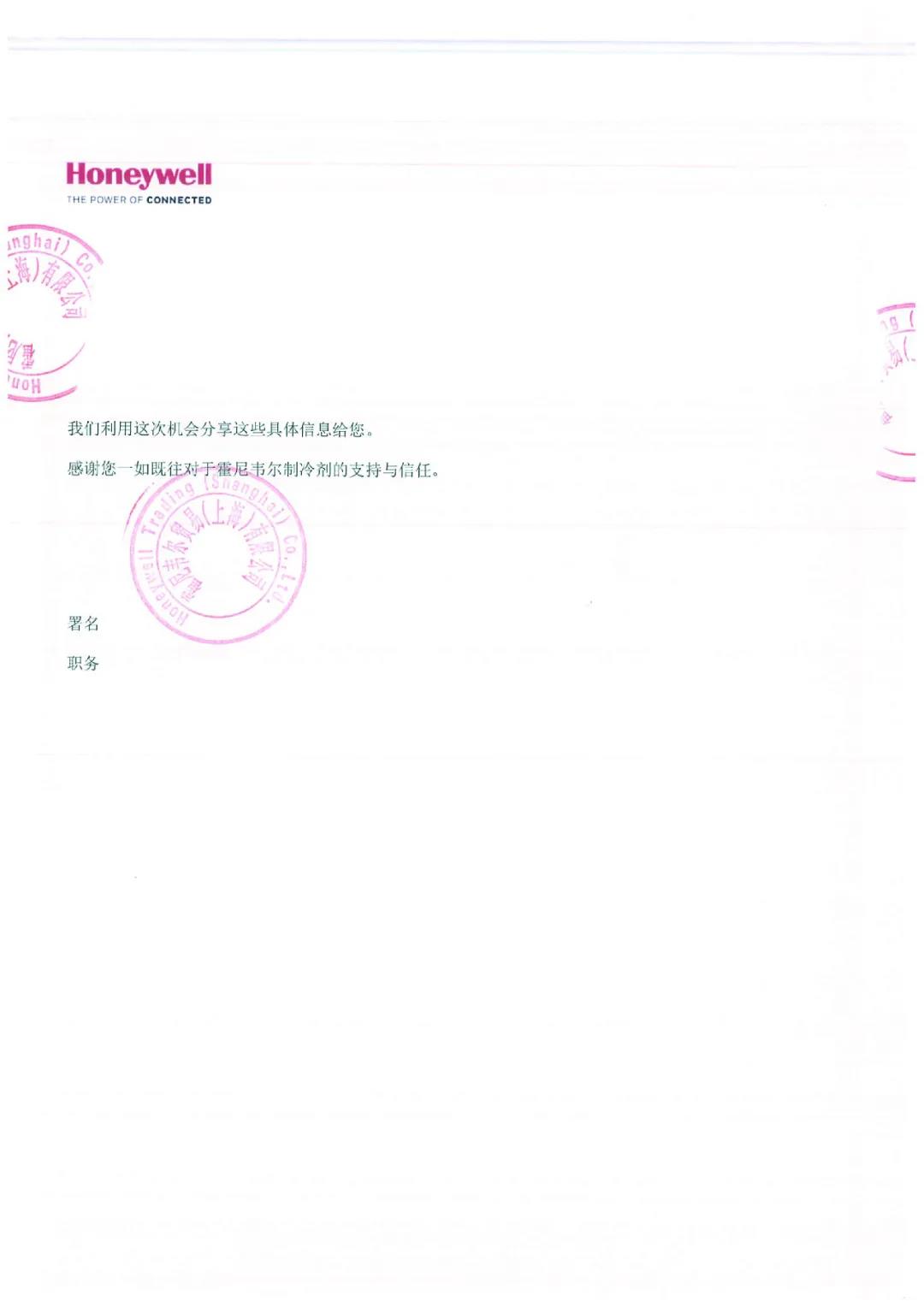 请正确识别并使用霍尼韦尔品牌制冷剂,保障设备及人身安全。